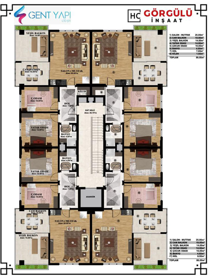 Sizleri modern ve konforlu 2+1 dairelerimizin bulunduğu bu benzersiz projamıza davet ediyoruz. Her daire, geniş oturma odası, modern mutfak, iki yatak odası ve banyo gibi fonksiyonel alanlarla tasarlanmıştır. Doğal ışığın içeri dolmasını sağlayan geniş pencereler, yaşam alanlarınızı aydınlatırken, modern iç tasarım detayları da evinizin şıklığını artırır. Ayrıca, güvenlik ve konforunuz düşünülerek tasarlanmış bu daireler, size sıcak bir aile ortamı sunuyor. Yeni bir yaşam başlamak üzere, sizleri bekliyoruz.